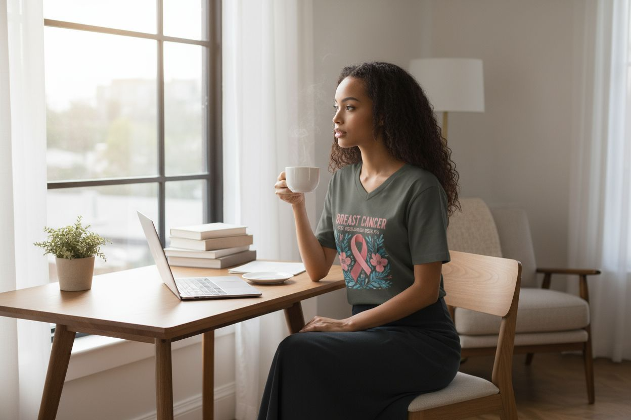 Show your strength and support with this asphalt gray tee, proudly featuring a meaningful breast cancer awareness design.