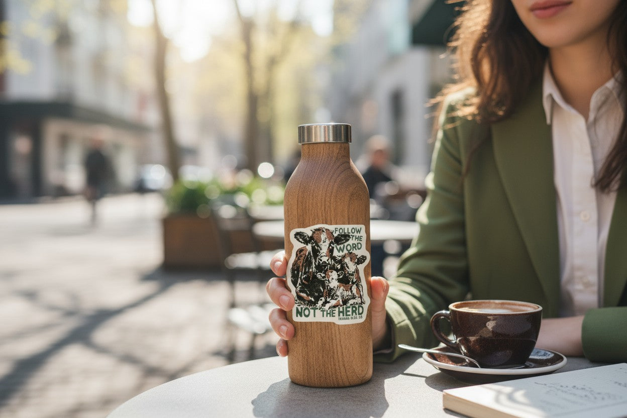 This unique sticker features a rustic cow illustration paired with the powerful message from Isaiah 8:11–13: “Follow the Word, Not the Herd.” A perfect mix of country charm and bold faith, it’s a daily reminder to choose God’s truth over going along with the crowd. Great for decorating water bottles, laptops, Bible covers, or journals—wherever you want to spread encouragement and spark conversation.
